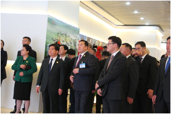 開幕式前,蒙古國大呼拉爾副主席桑吉米亞特布,自治區(qū)黨委書記、人大常委會主任李紀(jì)恒,自治區(qū)黨委副書記、自治區(qū)主席布小林,自治區(qū)黨委副書記兼政法委書記李佳,自治區(qū)農(nóng)牧業(yè)廳廳長郭健等領(lǐng)導(dǎo)一行來到內(nèi)蒙古國際會展中心巡館。