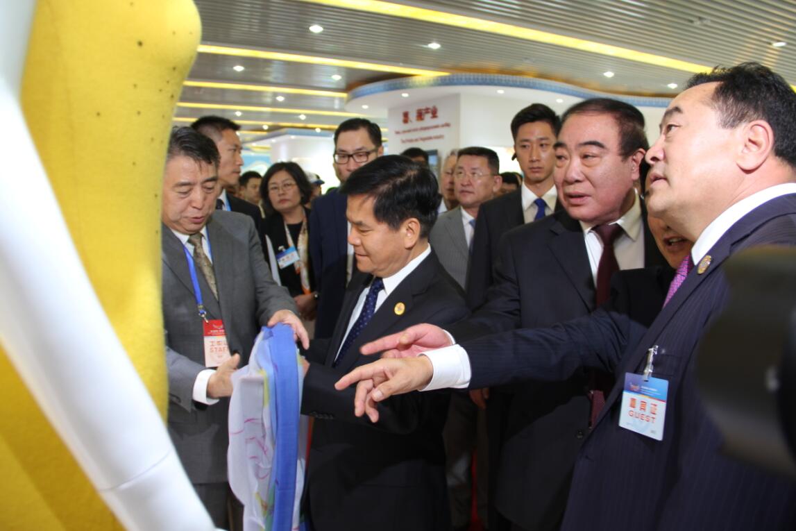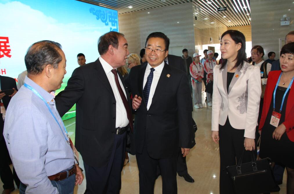 開幕式前,桑吉米亞特布、李紀(jì)恒、布小林、任亞平等來到內(nèi)蒙古國際會展中心巡館。展館內(nèi)人潮涌動,秩序井然,琳瑯滿目的商品和精彩紛呈的展示吸引著入場群眾,現(xiàn)場氣氛熱烈。