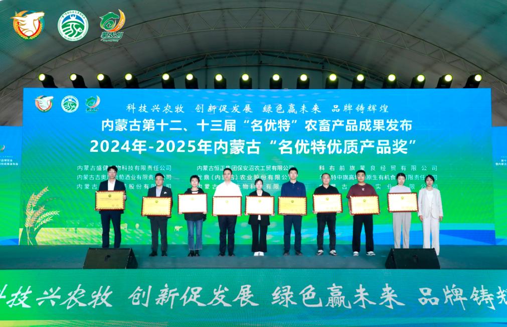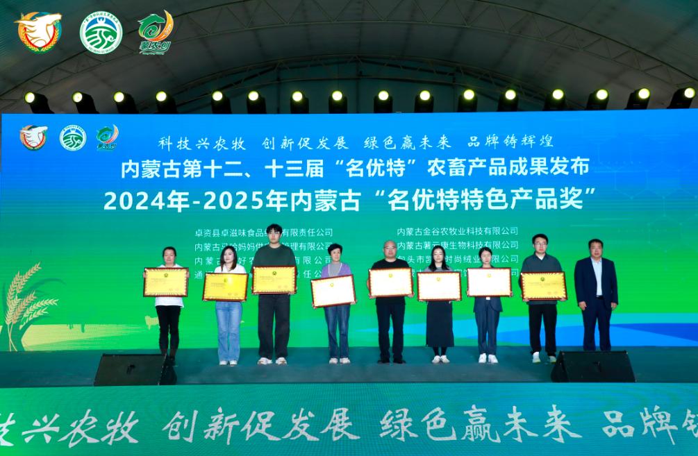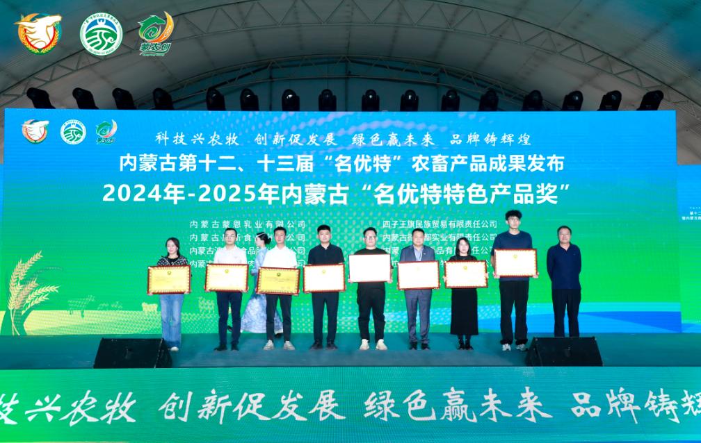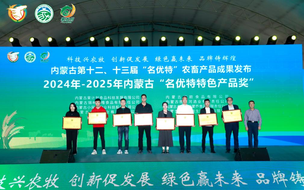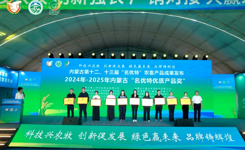 發(fā)布會上自治區(qū)農(nóng)牧廳二級巡視員侯雁冰、畜牧局局長紅海、自治區(qū)人民政府駐上海辦事處黨組書記、主任李志剛、自治區(qū)農(nóng)牧廳鄉(xiāng)村產(chǎn)業(yè)發(fā)展和農(nóng)墾處處長邢瑞、農(nóng)畜產(chǎn)品質(zhì)量安全中心副主任云巖春、協(xié)會會長徐建忠、內(nèi)蒙古綠色與有機食品協(xié)會常務(wù)副會長、高級顧問邢黎明為獲得第十二、十三屆名優(yōu)特認證的企業(yè)頒發(fā)獎牌并合影留念。