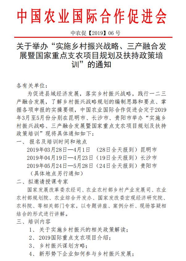 關(guān)于舉辦“實(shí)施鄉(xiāng)村振興戰(zhàn)略、三產(chǎn)融合發(fā)展暨國家重點(diǎn)支農(nóng)項(xiàng)目規(guī)劃及扶持政策培訓(xùn)”的通知