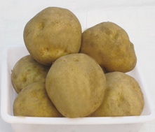 sheopdy,1980年加拿大育成,1987年從美國(guó)引進(jìn)我國(guó)試種。本品種屬中晚熟種,從播種到成熟100天左右,莖綠粗壯,多分枝,株型開(kāi)張,株高60—80cm,葉片卵圓形交替覆蓋切密集較大,淺綠色;花淺紫色(有的株系為白花)花瓣尖端伴白色,開(kāi)花較早,結(jié)薯較早且集中,塊莖長(zhǎng)橢圓形,白皮白肉,表皮光滑,芽眼極淺,大薯率高,塊莖干物質(zhì)含量23%—29%,還原糖0.2%,商品率80%—85%,對(duì)栽培條件要求嚴(yán)格,不抗旱、不抗?jié)?,?duì)澇特別敏感,易感PVX、PVY病毒,塊莖感病率高,產(chǎn)量水平隨生產(chǎn)條件的差異變幅較大,畝產(chǎn)在1500—3000公斤之間。