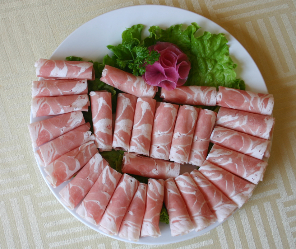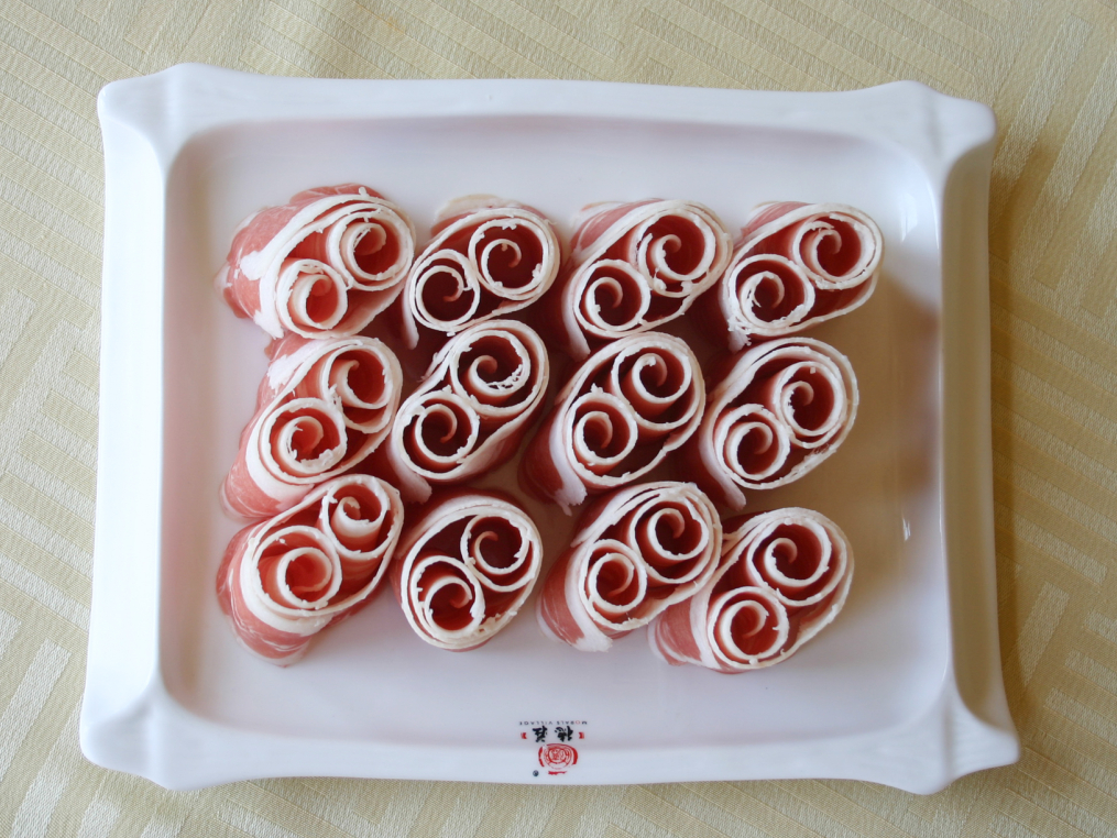 七、   杜泊羊肉卷:選用原料:采用南非引進的杜伯羊,經(jīng)過雜交改良的品種。肉中脂肪分布均勻,胴體品質高。經(jīng)選修之后,全部按照肥瘦搭配制成羊肉卷。一涮即熟、就涮不老。
