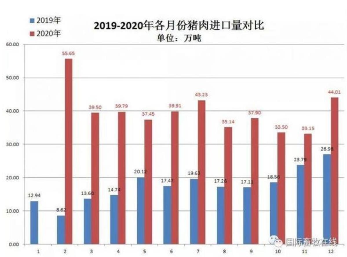 備注:20202月份數(shù)值為1-2月累計數(shù)據(jù),圖表來源于國際畜牧在線)